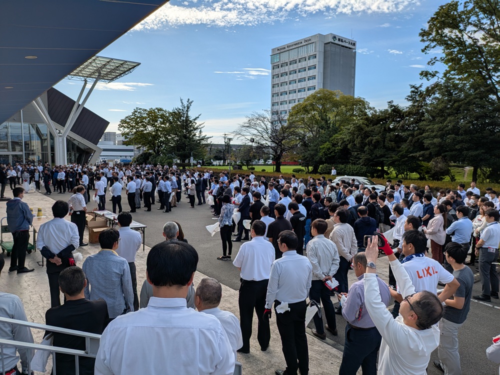 杉浦幸男理事長の挨拶の後、今年度、業種別から地域別に変更となった部会ごとに3グループに分かれて自社の地域を中心に清掃作業を行った。道路や側溝のゴミを拾うだけでなく、駅前や公園周囲、歩道、街路樹の根元の除草も実施。